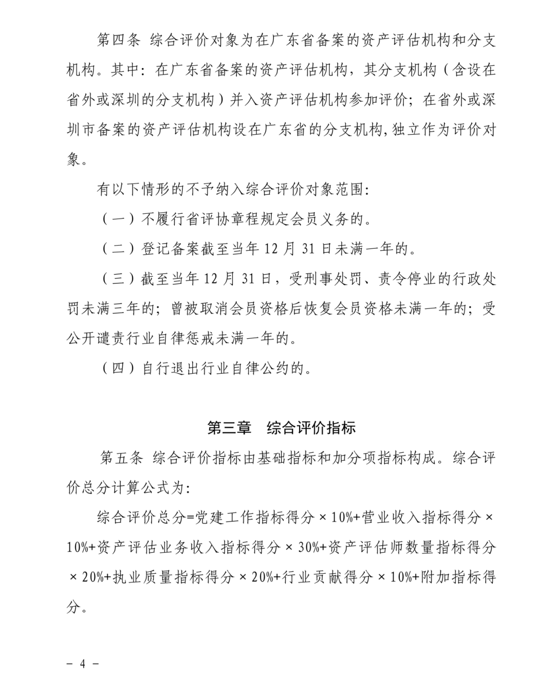 为加强党的全面领导,综合反映与科学评价广东省资产评估机构整体实力和专业胜任能力,推动资产评估机构聚焦中心、服务大局,增强风险意识,强化诚信建设,完善治理体系,提高服务质量,提升行业公信力和影响力,赋能经济社会高质量发展,广东省资产评估协会修订《广东省资产评估机构综合评价办法》已于2025年9月17日经广东省资产评估协会第四届常务理事会第十六次会议审议通过,现予发布。